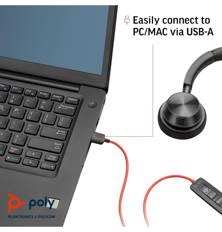 Auricular de UC con cable USB-A, estéreo, micrófono de brazo, para PC o Mac, compatible con Zoom, Teams.