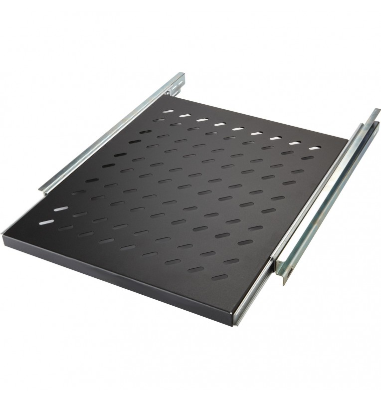 Bandeja telescópica que se sujeta en los perfiles delanteros y traseros con una profundidad de montaje entre 605 a 855 mm entre guías.