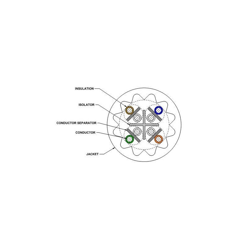 Cable UTP NO apantallado Categoría 6A AWG23, Cubierta Color Blanco, LSZH CPR Cca. Diámetro REDUCIDO exterior 7,24 mm. Se suministra en caja de 305 mts Ref. fabricante : 884030814/10 NETCONNECT®