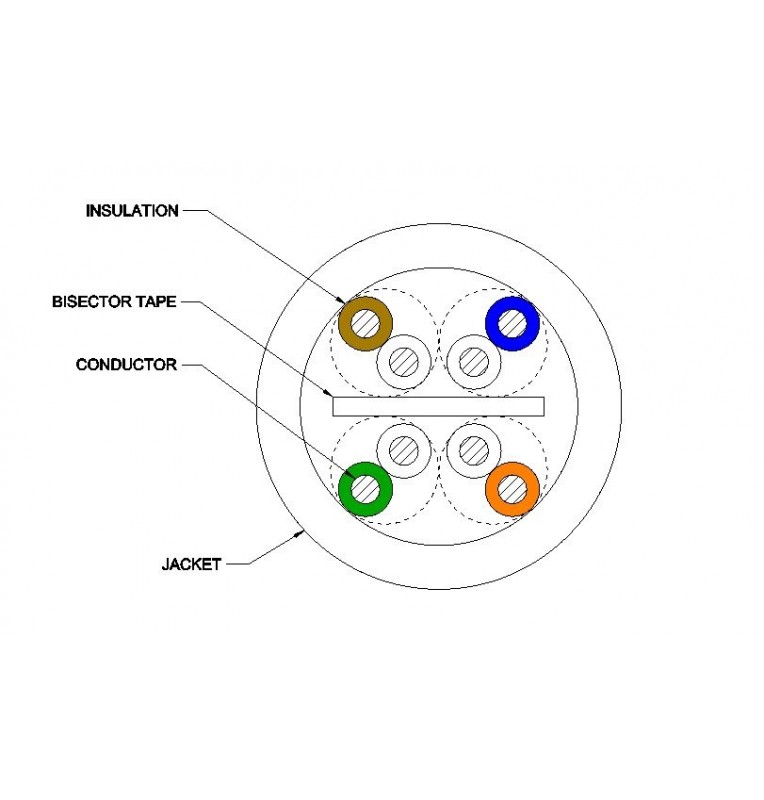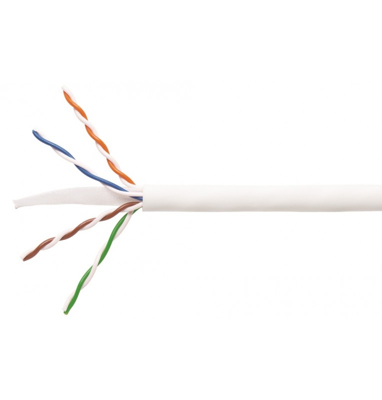 Cable de 4 pares UTP Cat.6 sin apantallar con galga de cobre de 23 AWG de Categoría 6 para transmisión de datos hasta 1Gigabit Ethernet, cubierta libre de halógenos LSZH y CPR Cca, diámetro exterior 5,91 mm, cubierta exterior color blanco, formato caja 305 mts. Commscope/AMP ref.: 884016214/10 NETCONNECT®