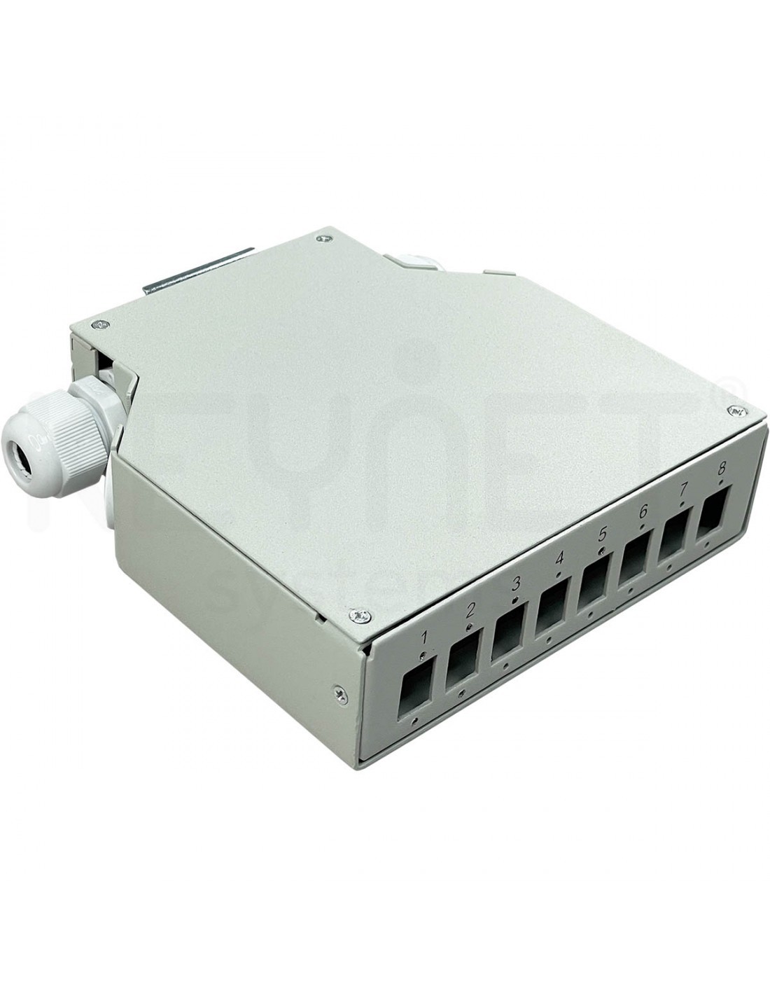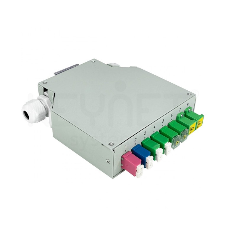 Panel frontal con 8 adaptadores tipo SC Simplex. Adaptadores no incluidos. Ref. KEYTDIN8SCSX
