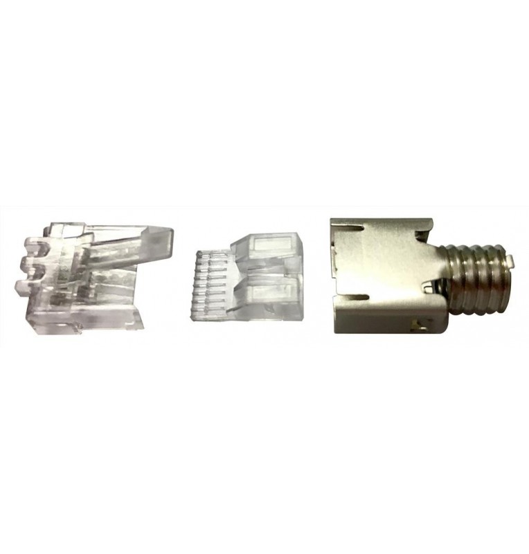 Conector macho RJ45 Categoría 6 de gran calidad en 3 piezas para cable rígido o flexible y UTP/STP.  Diámetro cable entre 5.7 – 7 mm (AWG 23 – 26).Ref: 6-2111989-3 Para su terminación se requiere crimpadora específica Commscope 790163-5