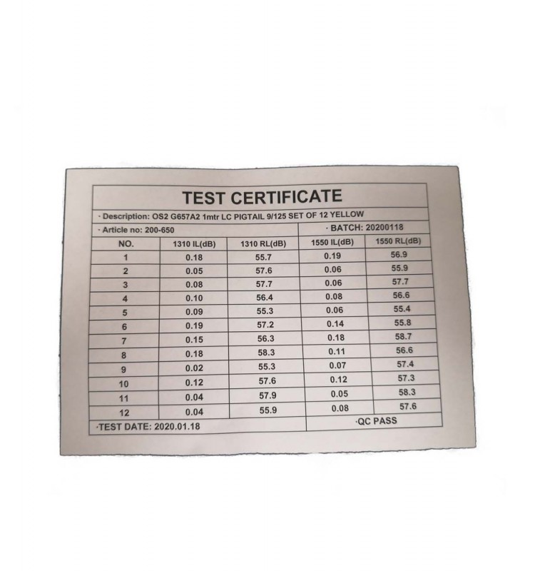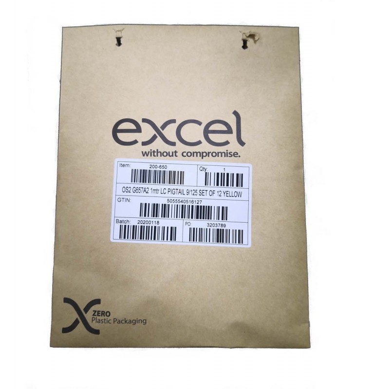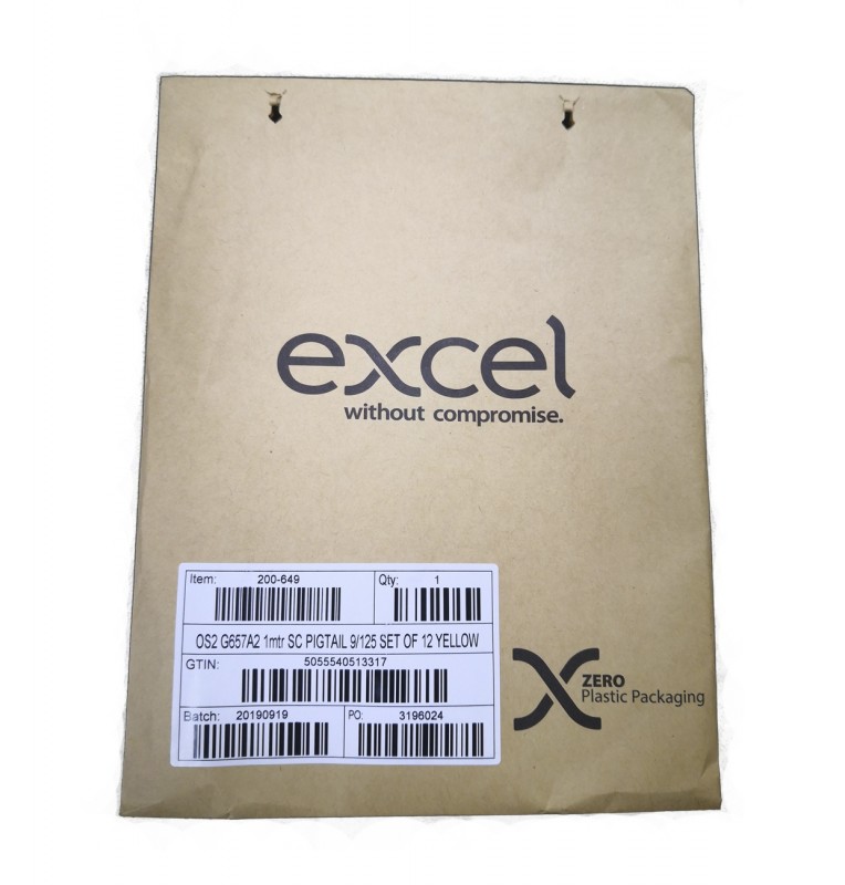 Los pigtails de fibra óptica monomodo de Excel están fabricados con fibra óptica de 900 micras de la mayor calidad, terminados con casquillo de cerámica.Para facilitar la preparación del cable y el empalme, se utiliza cable de estructura semiajustada de fácil pelado. En el centro del cable, una etiqueta contiene el número de lote único a efectos de calidad y seguimiento. Zero Plastic Packaging