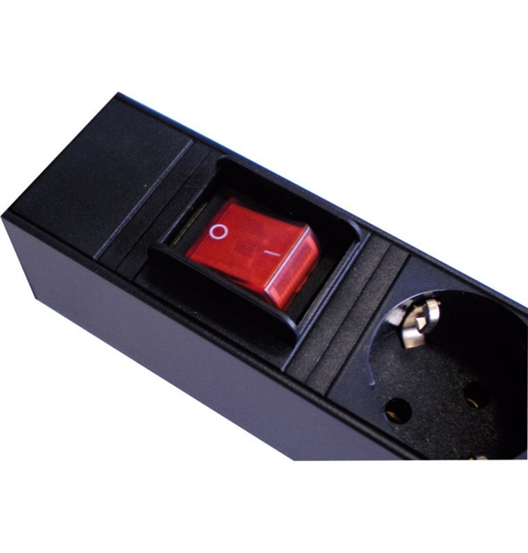 Regletero 19″ x 1U x 8 enchufes con interruptor + Shucko macho en punta.  Potencia máxima de 4000W, schukos de 16A. El interruptor actúa como indicador Led de encendido o apagado. Cable de alimentación 3Gx1,5mm2 y de 2 mts de longitud. Carcasa de aluminio. Conformidad con la normativa de seguridad CE y con el RoHS. Ref. fabricante : MXI16108S1